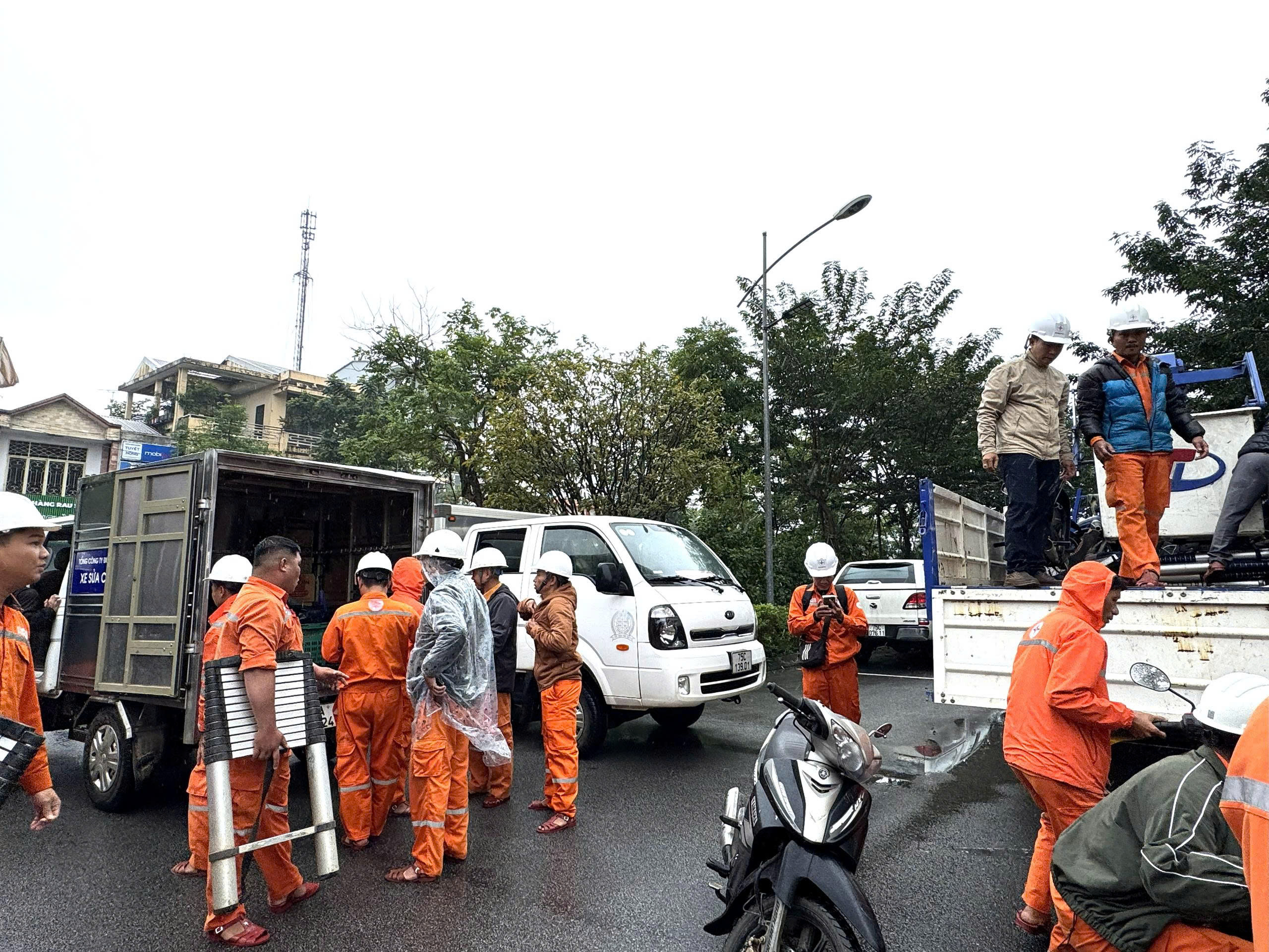 Theo đó, thực hiện chỉ đạo của Tổng công ty Điện lực miền Trung, Công ty Điện lực Huế đã nhanh chóng thành lập đội xung kích với 62 CBCNV có sức khỏe tốt, tay nghề giỏi, có kinh nghiệm và 9 xe chuyên dụng mang theo các trang thiết bị, công cụ, dụng cụ sửa chữa lưới điện, vật tư, thiết bị dự phòng, phương tiện và một số nhu yếu phẩm để thực hiện nhiệm vụ và hỗ trợ bà con.
