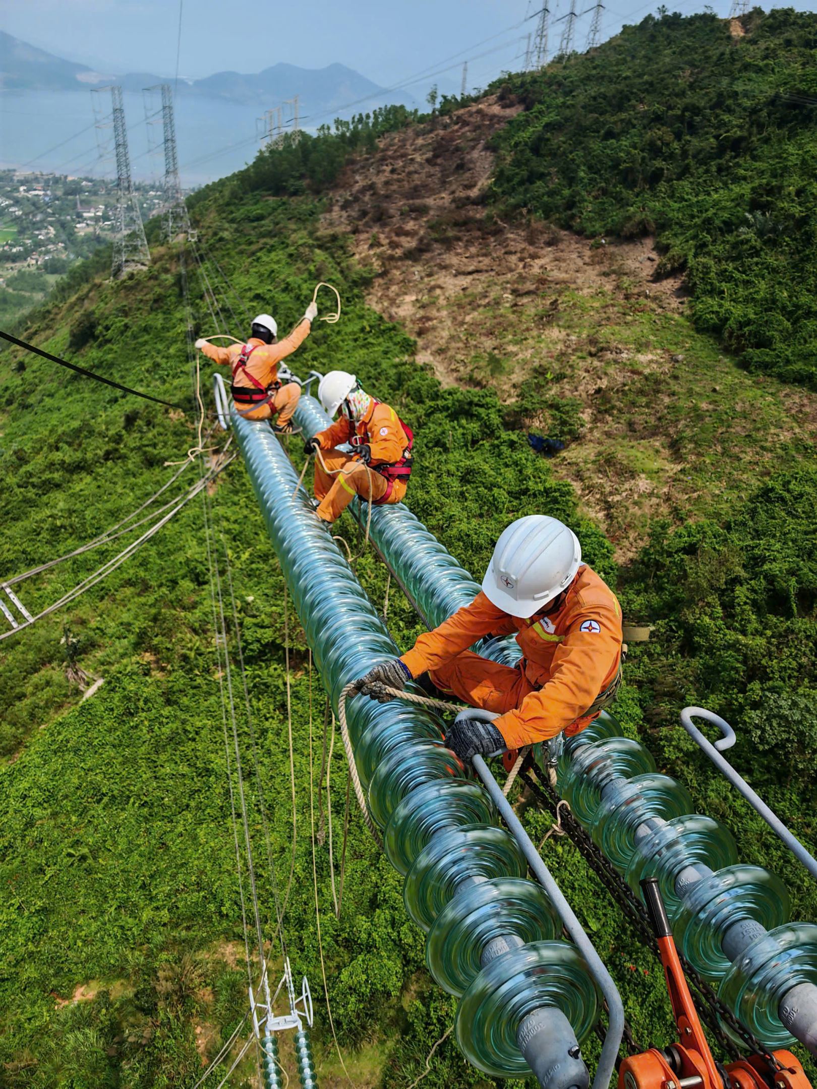 Công nhân PTC2 sửa chữa, bảo dưỡng thiết bị đường dây