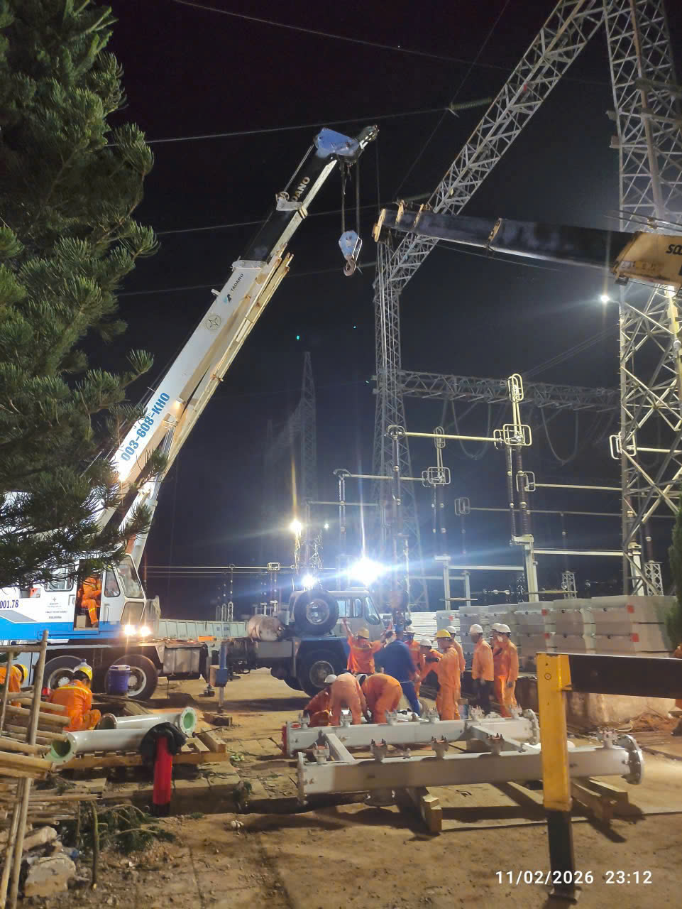 Người lao động PTC2 làm việc xuyên đêm, xuyên tết nâng công suất tại TBA 500kV Đà Nẵng.