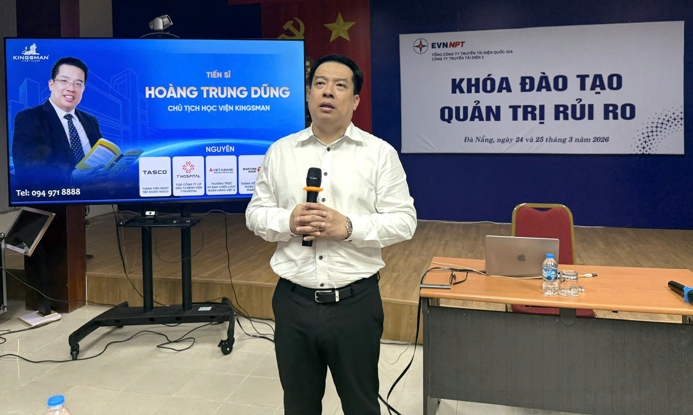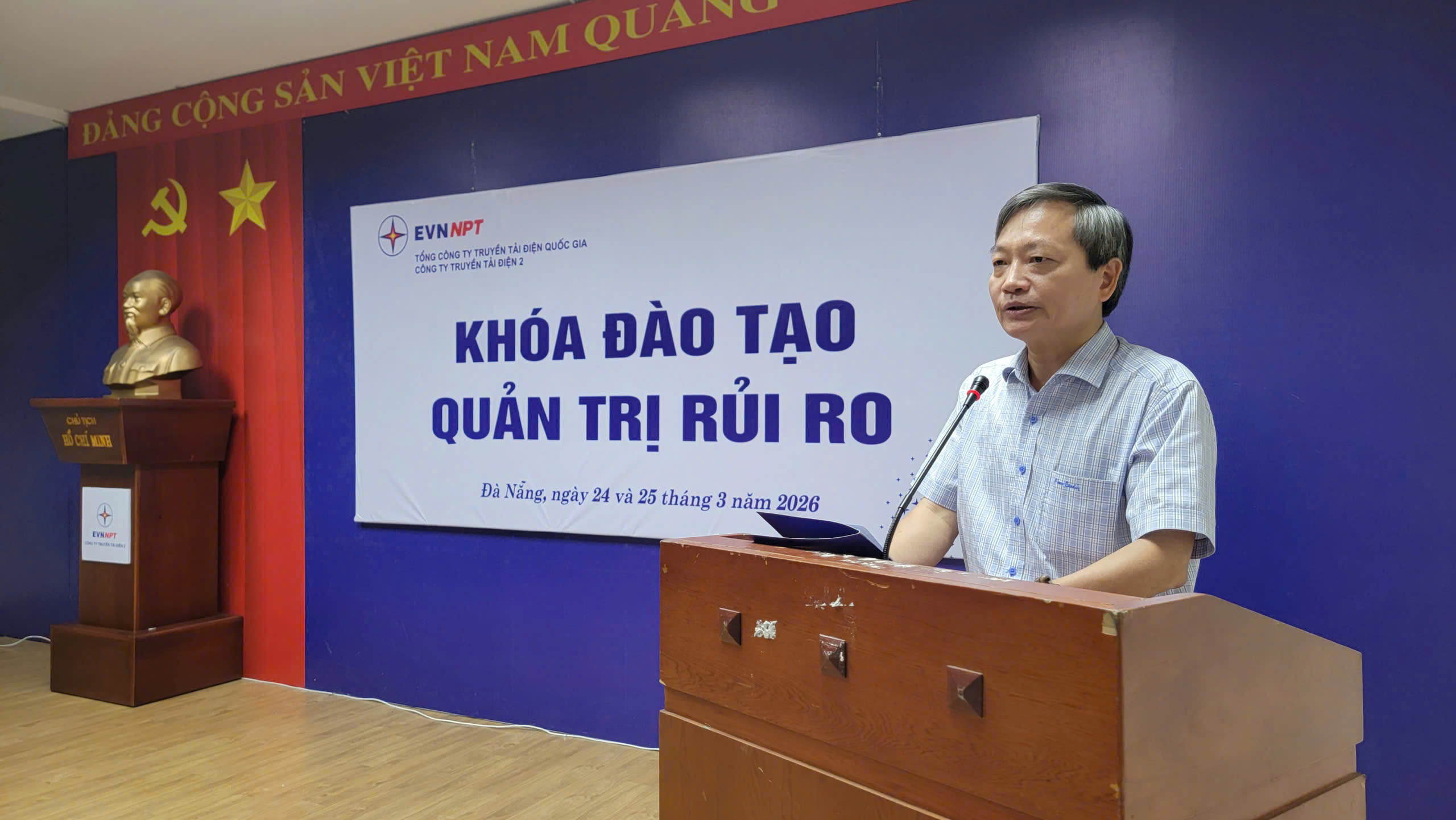 Trong 2 ngày 24 và 25/3/2026 tại Đà Nẵng, Công ty Truyền tải điện 2 (PTC2) đã phối hợp với Công ty Cổ phần tư vấn và đào tạo Kingsman tổ chức khóa học “Quản trị rủi ro” cho 54 cán bộ quản lý từ cấp phó phòng chuyên môn, phó đơn vị trực thuộc trở lên. Ông Lê Đình Chiến – Bí thư Đảng ủy, Giám đốc Công ty đã đến dự và phát biểu chỉ đạo khóa học.