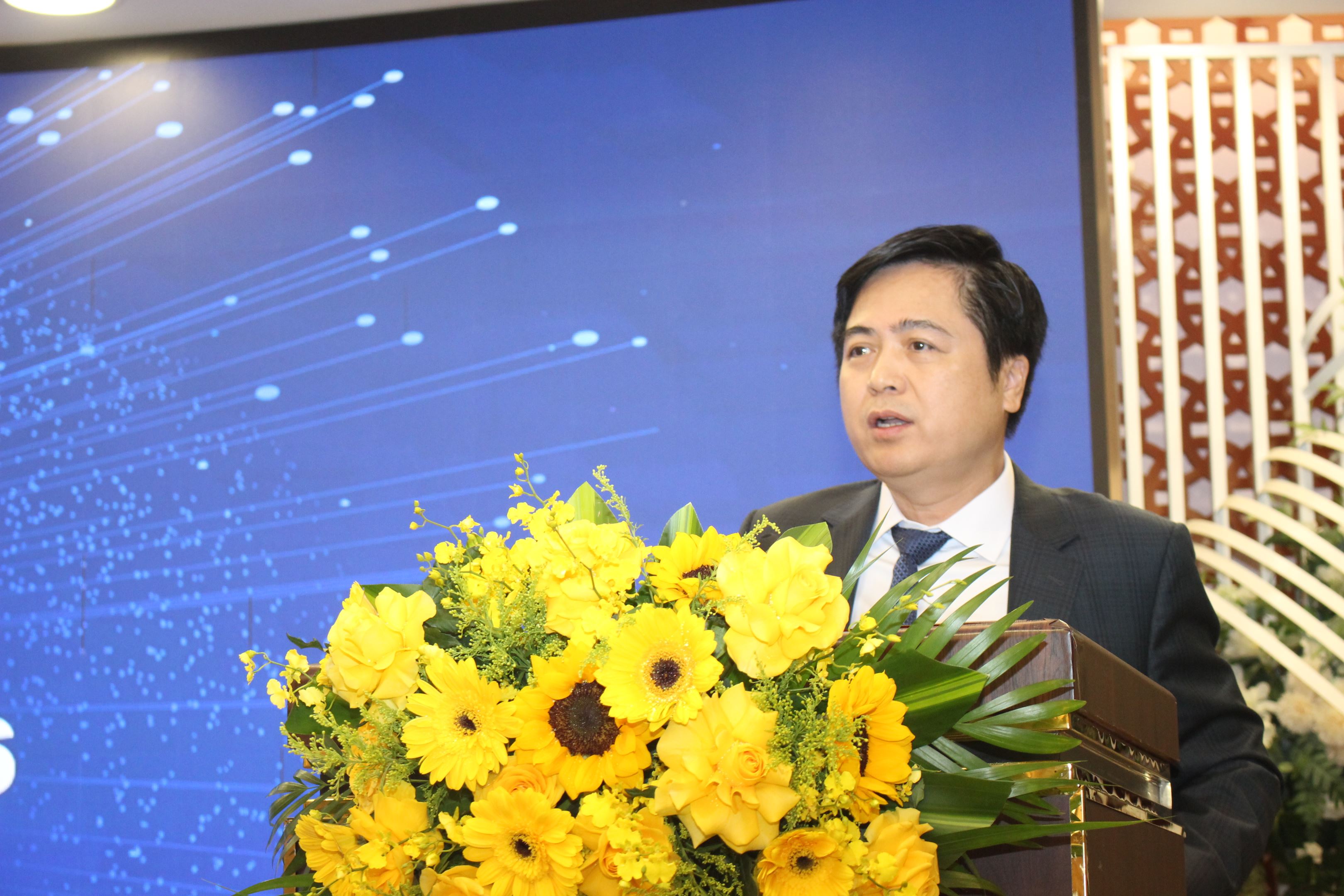 Đ/c Trương Hữu Thành – Phó Bí thư Đảng ủy, Quyền Tổng giám đốc EVNNPT phát biểu tại buổi lễ trao tặng huy hiệu 30 năm tuổi đảng.