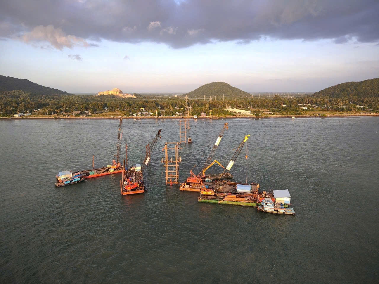 Theo ghi nhận, Công ty TNHH Tư vấn Thiết kế Xây dựng Thuận Thành KG đang thi công dựng sàn đạo trong hành lang an toàn của tuyến cáp ngầm 110kV Hà Tiên - Phú Quốc thuộc bờ biển Hà Tiên. Việc ép cọc thép sàn đạo là nguyên nhân gây nên sự cố thuộc đoạn cáp ngầm 110kV cấp điện cho đặc khu Phú Quốc.
