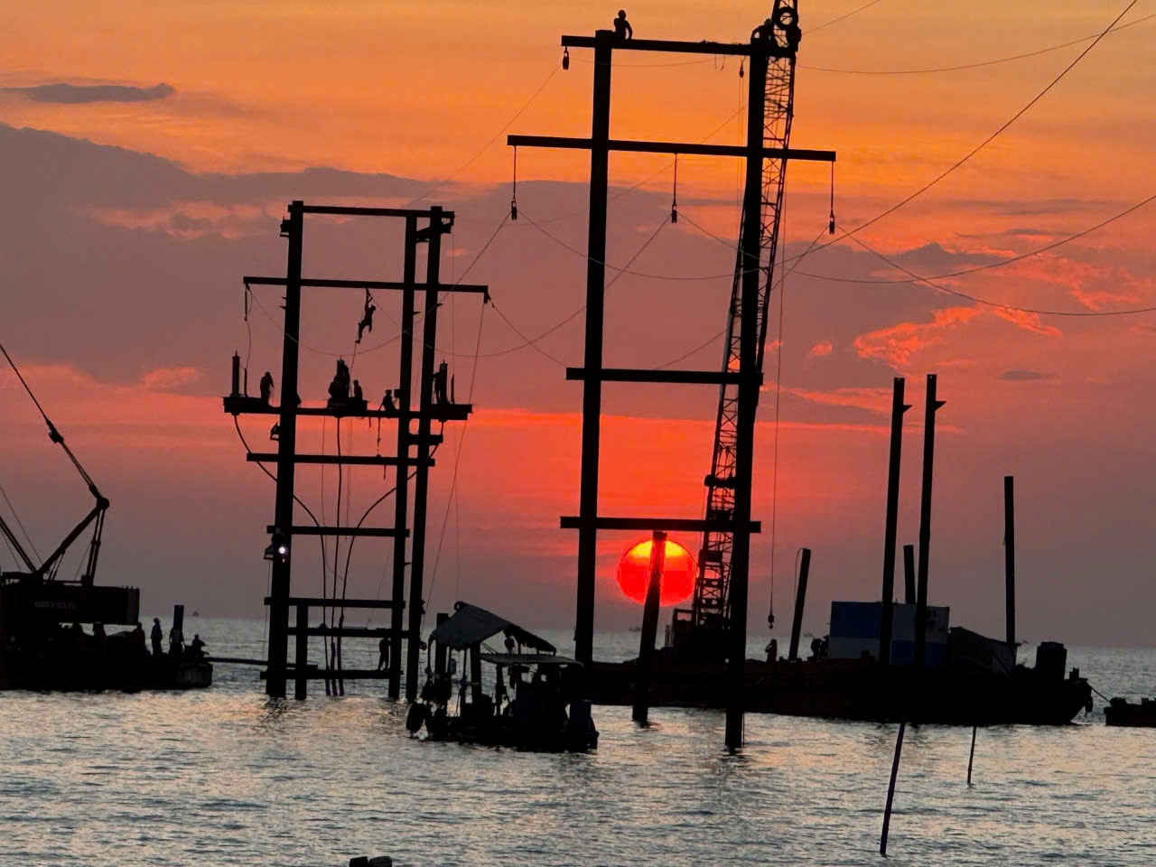 Một số hình ảnh: Cán bộ, kỹ sư công nhân EVNSPC, PC An Giang và các đơn vị liên quan khẩn trương thi công ngày, đêm để khắc phục sự cố cáp ngầm 110kV Hà Tiên-Phú Quốc, khôi phục cấp điện hoàn toàn cho đặc khu Phú Quốc.