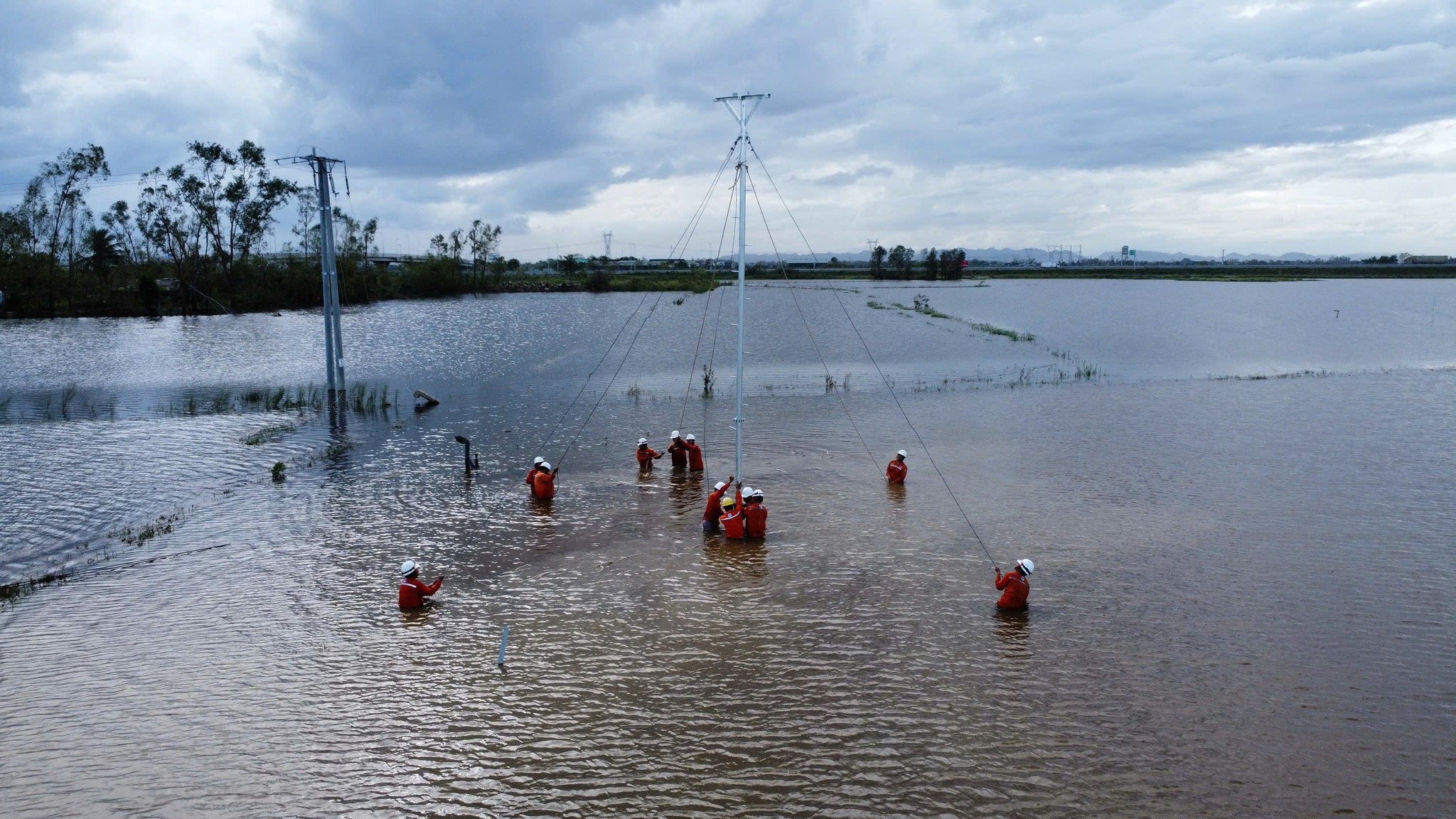Công nhân EVNNPC khắc phục hậu quả của bão số 10 (Bualoi)