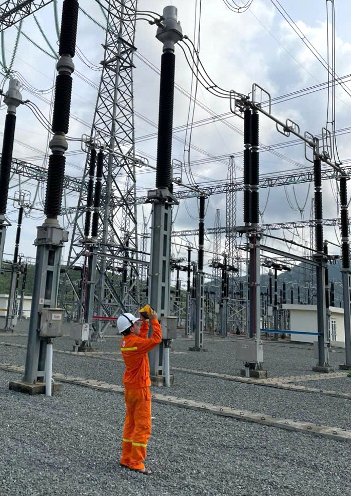 ATVSV Nguyễn Mậu Cường đo nhiệt độ thiết bị TBA 500kV Quảng Trạch.