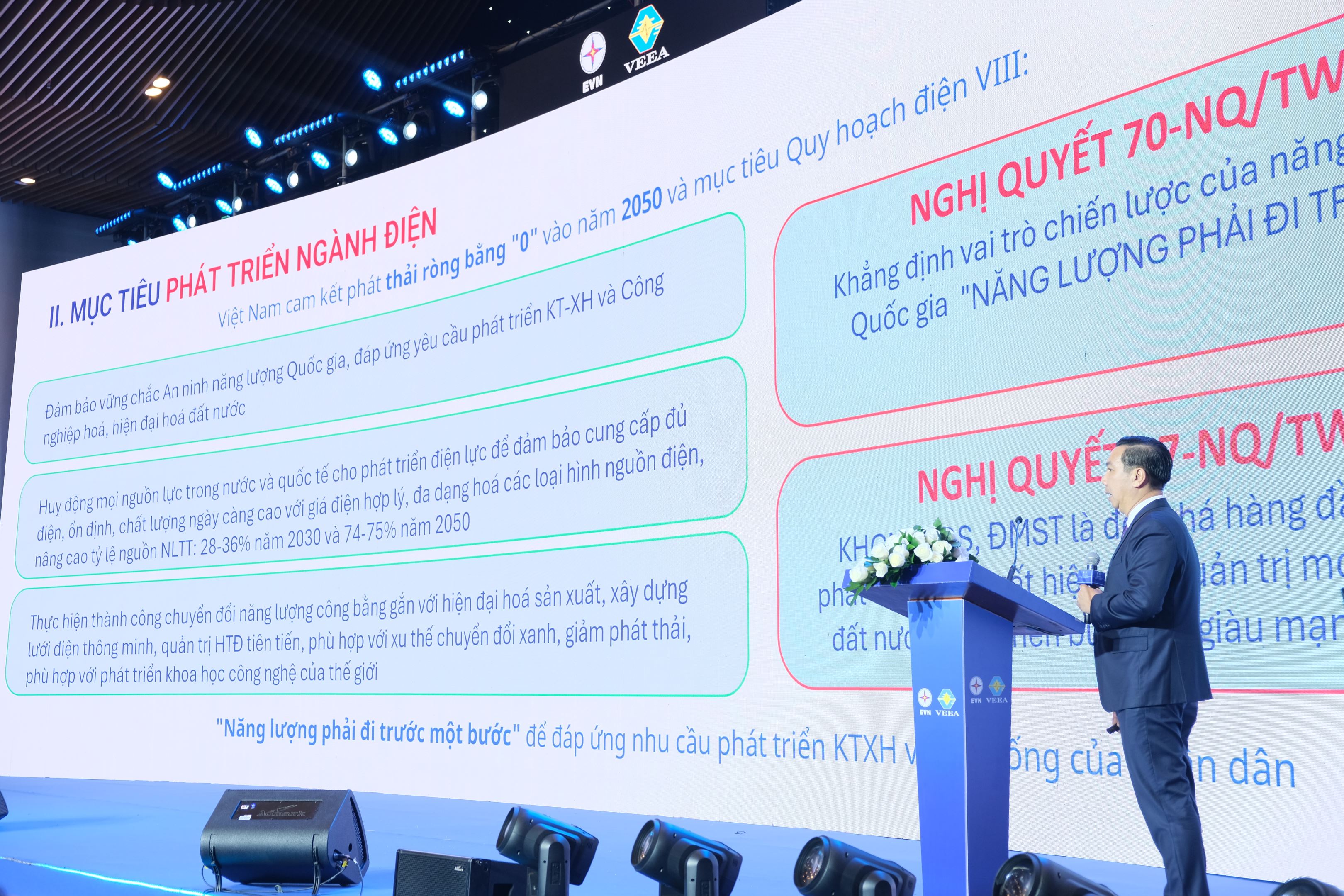 Khai mạc hội nghị, ông Mai Quốc Hội - Phó Chủ tịch kiêm Tổng thư ký VEEA nhấn mạnh, Đảng và Chính phủ luôn quan tâm đến việc phát triển năng lượng quốc gia, đặc biệt là phát triển khoa học, công nghệ về phát triển năng lượng. Trong 5 năm gần đây, Bộ Chính trị đã có các Nghị quyết quan trọng về phát triển năng lượng, cụ thể như: Nghị quyết 55-NQ/TW ngày 11/02/2020, Nghị quyết số 57-NQ/TW ngày 22/12/2024, Nghị quyết 70-NQ/TW ngày 20/8/2025. Thực hiện các Nghị quyết của Bộ Chính trị, ngành Điện đã tích cực triển khai nhiều giải pháp khoa học, công nghệ, chuyển đổi số để tối ưu hóa trong quản lí vận hành hệ thống điện đã đạt được nhiều kết quả tích cực.
