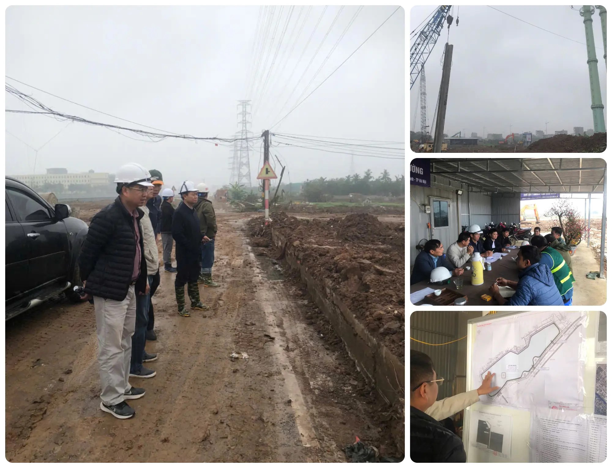 Ông Đinh Thế Hùng – Phó Truyền tải điện và bộ phận Kỹ thuật kiểm tra hiện trường thi công