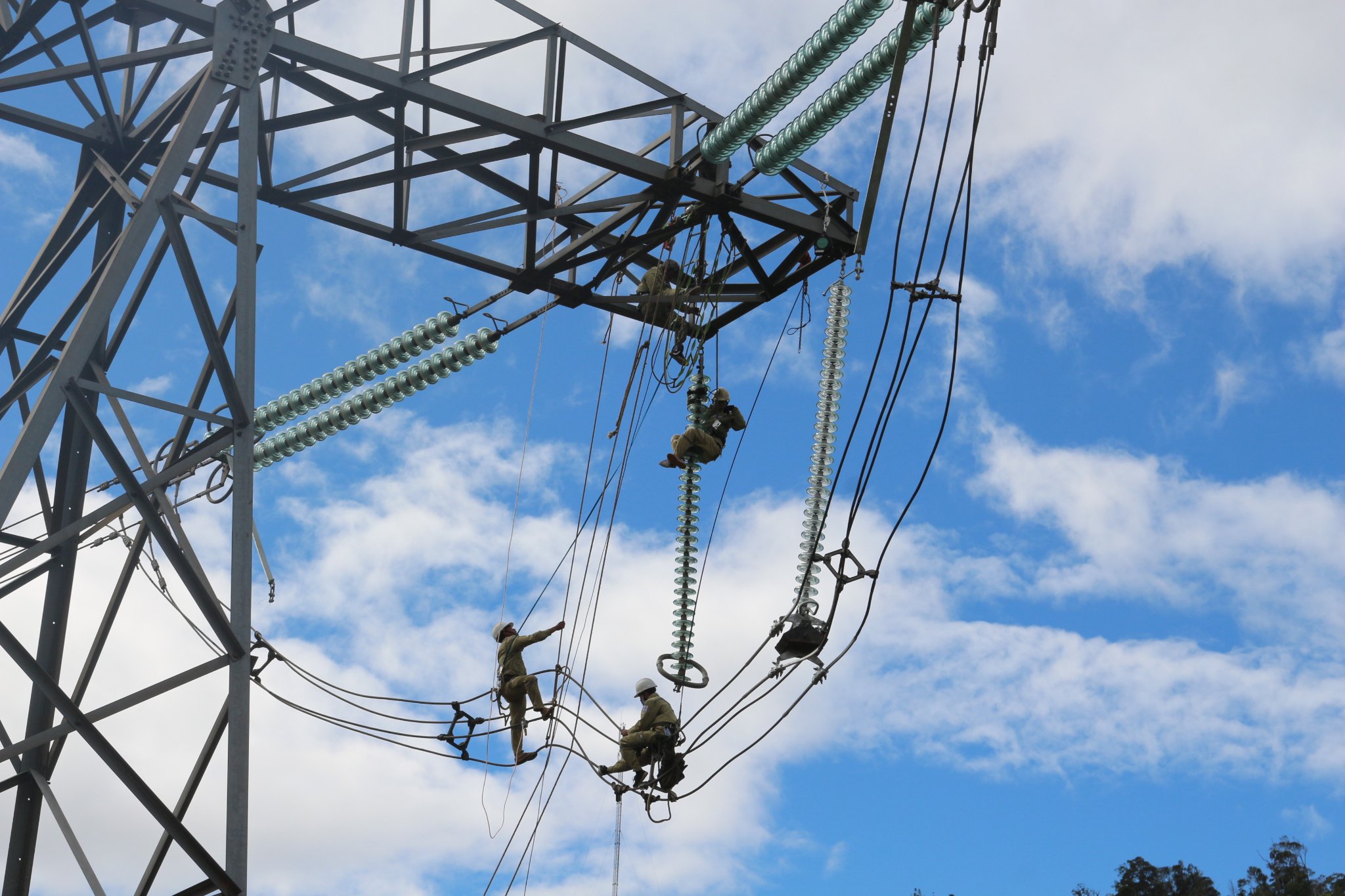 Công nhân tổ QLVH đường dây Kon Tum và Bà Bơ duy tu, bảo dưỡng thiết bị trên tuyến đường dây 500kV mạch 3