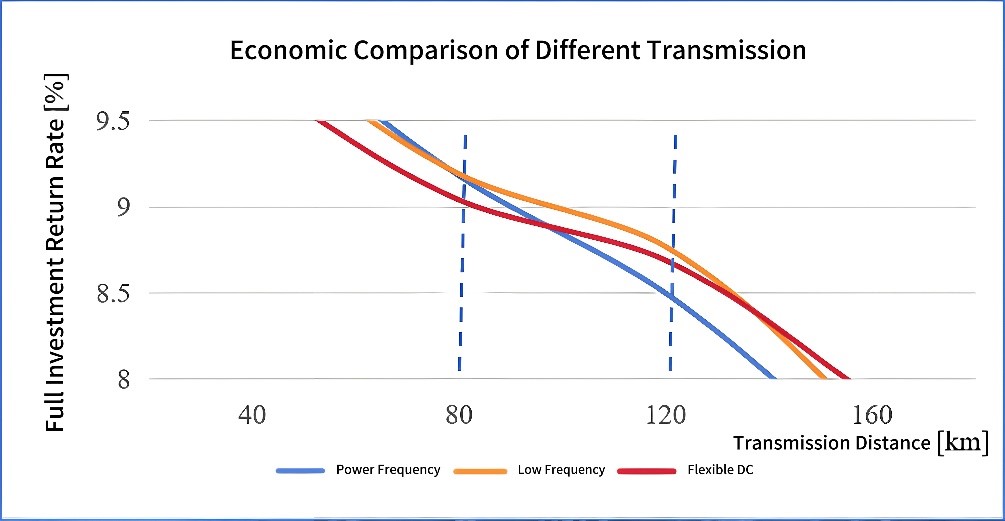Hình 3. So sánh tính kinh tế của các chế độ truyền tải khác nhau cho tua-bin gió ngoài khơi